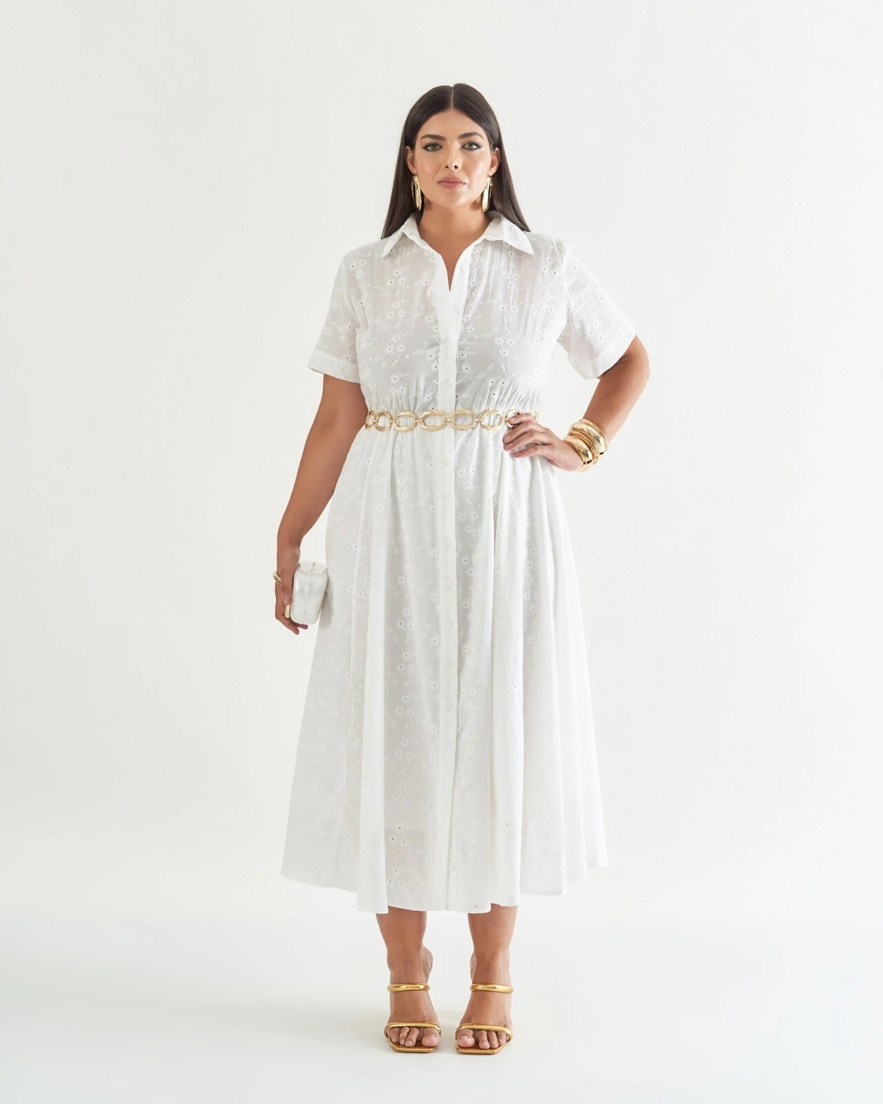 VESTIDO MIDI COM DECOTE QUADRADO QUEBELA