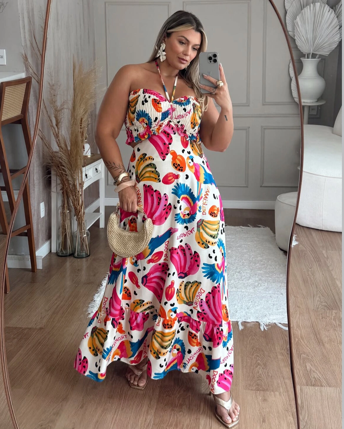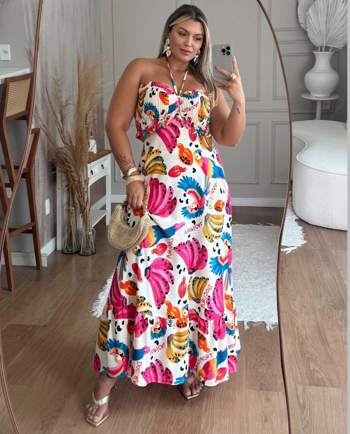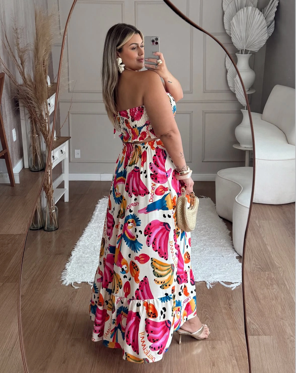 Saia e Top estilo Farm, em viscose , com estampa tropical. Top possi elastex 360graus.